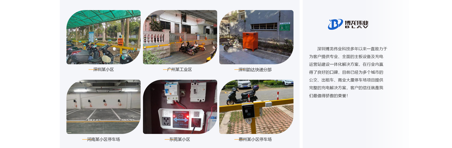 深圳市博龍偉業(yè)科技有限公司創(chuàng)辦于2002年,是一家集研發(fā)、制造、銷(xiāo)售于一體的科技企業(yè)。專(zhuān)業(yè)從事物聯(lián)網(wǎng)智能控制、共享充電、遠(yuǎn)程智能控制、智能GPS自動(dòng)報(bào)站的研究、開(kāi)發(fā)、制造及銷(xiāo)售,憑借公司強(qiáng)大的技術(shù)力量和經(jīng)濟(jì)實(shí)力,不斷開(kāi)發(fā)出具有國(guó)際先進(jìn)技術(shù)水平的新產(chǎn)品。公司產(chǎn)品廣泛適用于公交車(chē)、觀(guān)光車(chē)、電動(dòng)車(chē)充電、新能源汽車(chē)充電、智慧社區(qū)、智慧園區(qū)等。 項(xiàng)目案例有: 共享電瓶車(chē)充電樁,共享單車(chē)、共享按摩椅、共享充電寶、共享紙巾機(jī)、醫(yī)院共享陪護(hù)床、共享復(fù)印 機(jī)、共享雨傘、遠(yuǎn)程控制開(kāi)頭電源等。